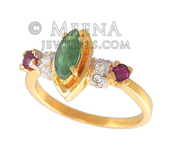 22K Gold Ring with Ruby, Emerald ( Ladies Rings with Precious Stones )