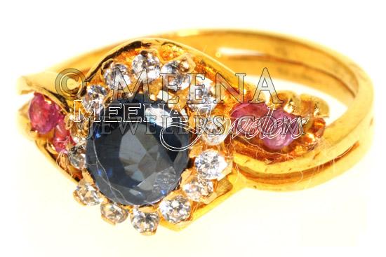 22 karat gold ring with precious Blue Sapphire, Cubic Zircon and Ruby