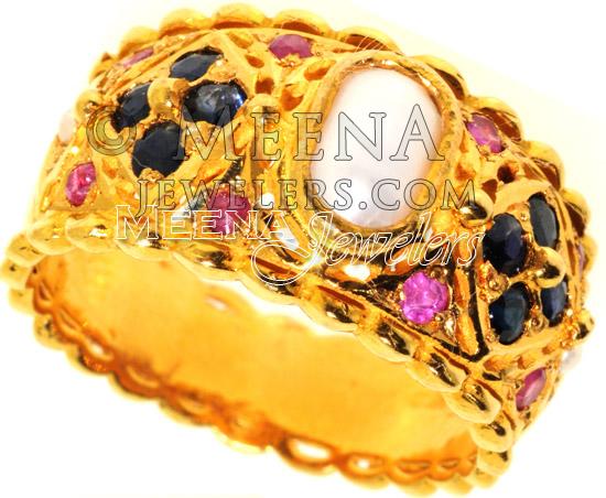 Gold Ring with Pearl , Sapphire and Ruby ( Ladies Rings with Precious Stones )