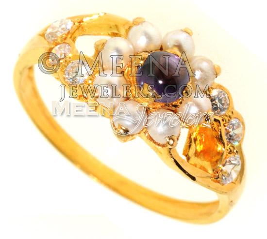 22Kt gold ring with Cubic Zircon Amethyst & Pearl