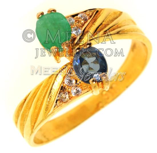 Gold Ring with Emerald, Sapphire and CZ ( Ladies Rings with Precious Stones )