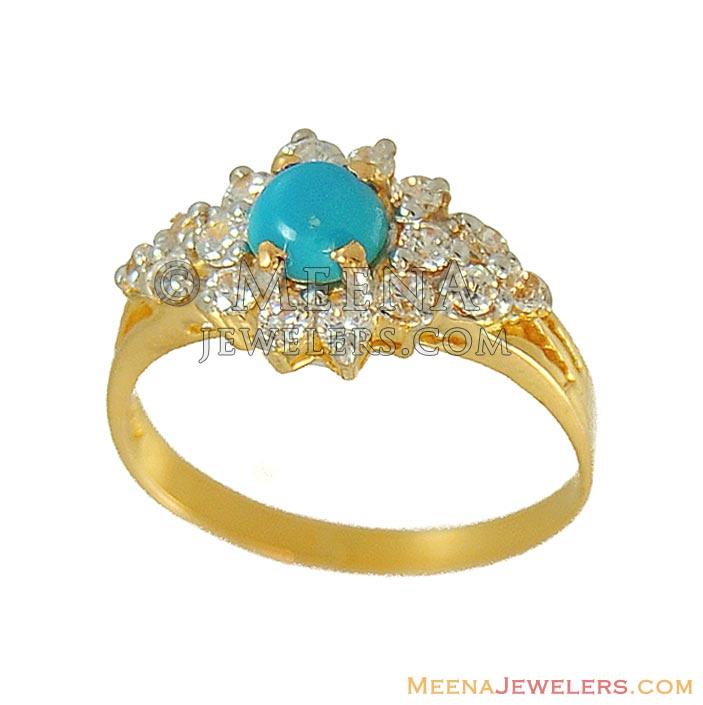 Gold Ring with Turquoise , Cz ( Ladies Rings with Precious Stones )