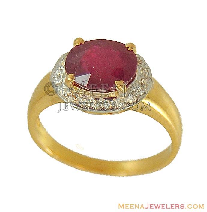 22k Gold Ruby And Cz Ring  ( Ladies Rings with Precious Stones )