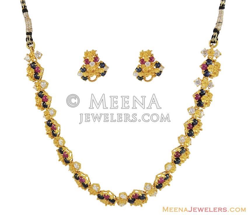 22K CZ,Ruby And Sapphire Stone Set  ( 22 Kt Gold Sets )