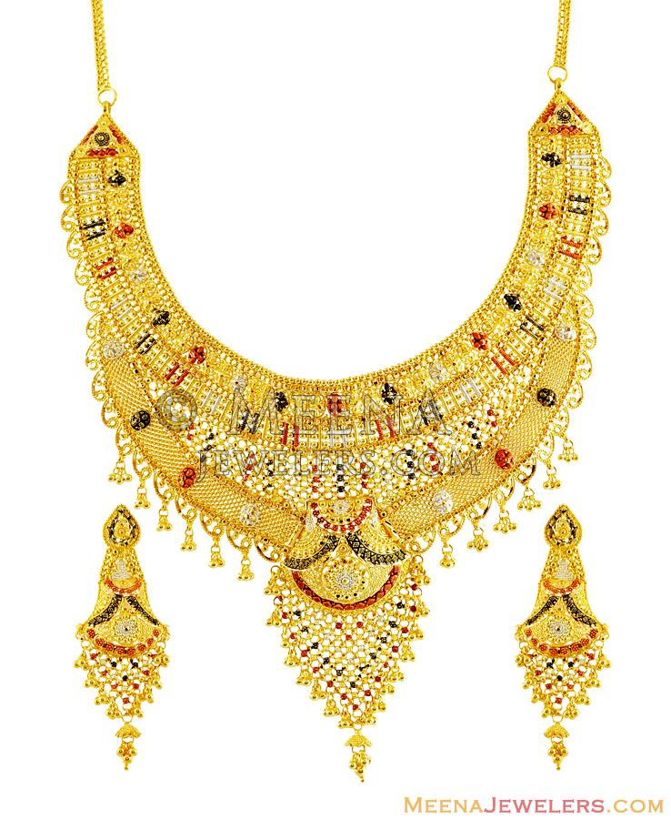 22K Tricolori Bridal Necklace Set ( Bridal Necklace Sets )