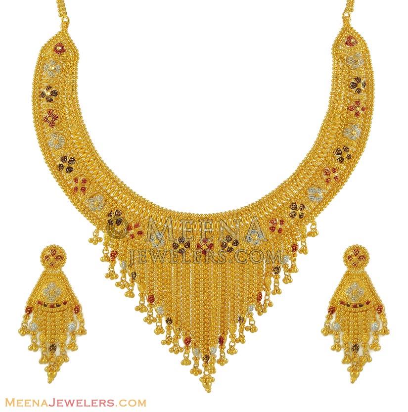 22K Tricolor Bridal Necklace Set ( Bridal Necklace Sets )
