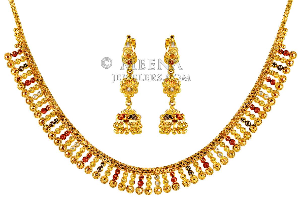 22K Gold Tricolor Necklace Set